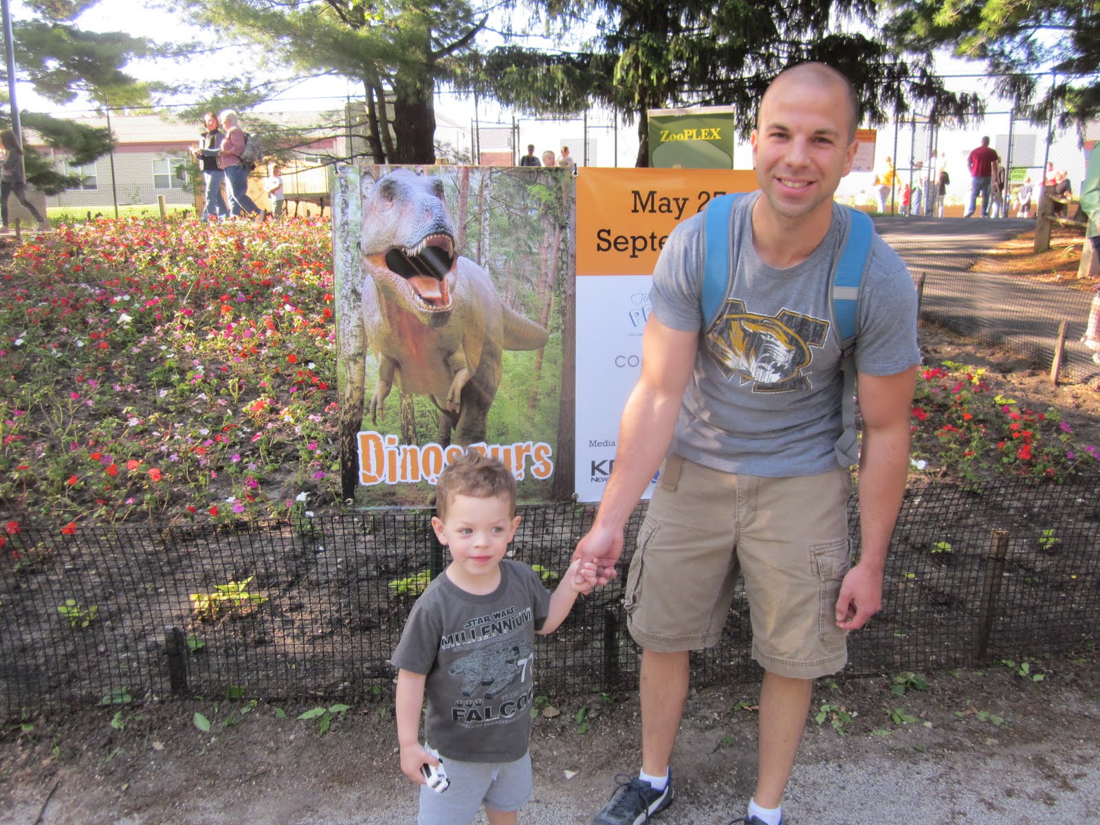 Being a zoo member has its perks, and at the end of last month we were able to preview the new dinosaur exhibit before it opened to the public. Topher was talking about it all week. Note to moms: don't mention something exciting to a toddler until the day you are going to do it.